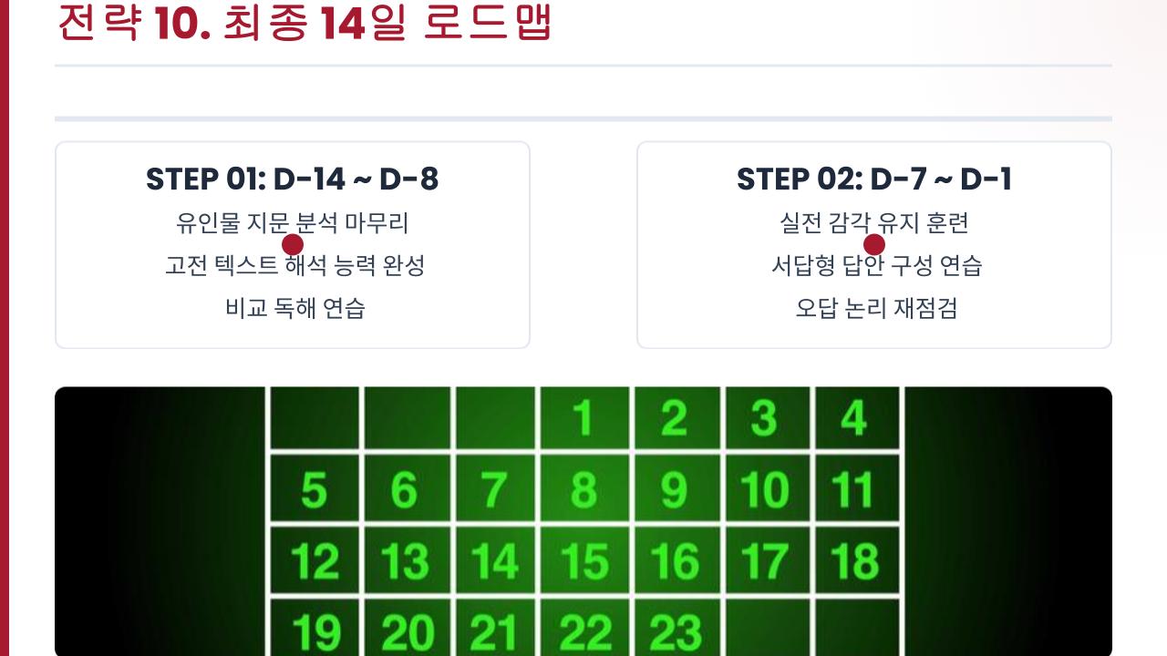 전략 10. 최종 14일 로드맵, 과업 중심의 실전 숙달