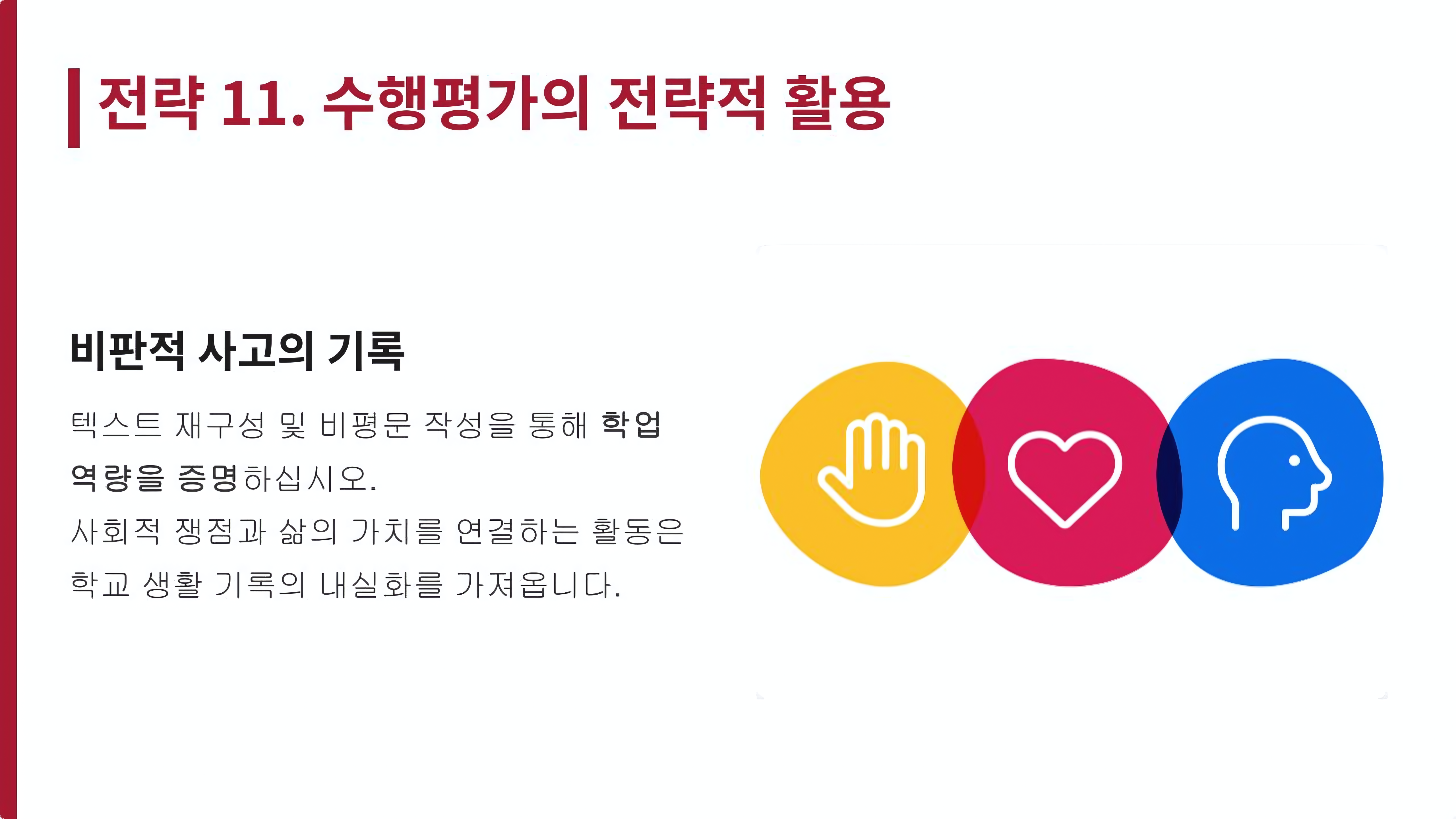 전략 11. 수행평가의 전략적 활용 비판적 사고의 기록과 학교 생활 기록의 내실화