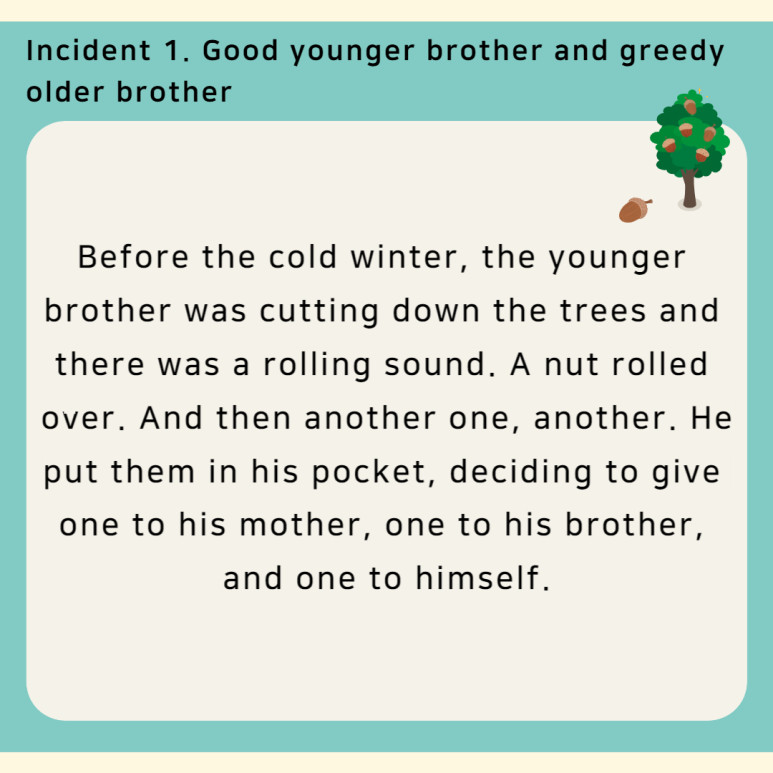 Incident 1. Good younger brother and greedy older brother