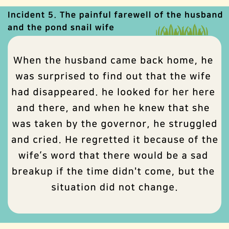 Incident 5. The painful farewell of the husband and the pond snail wife