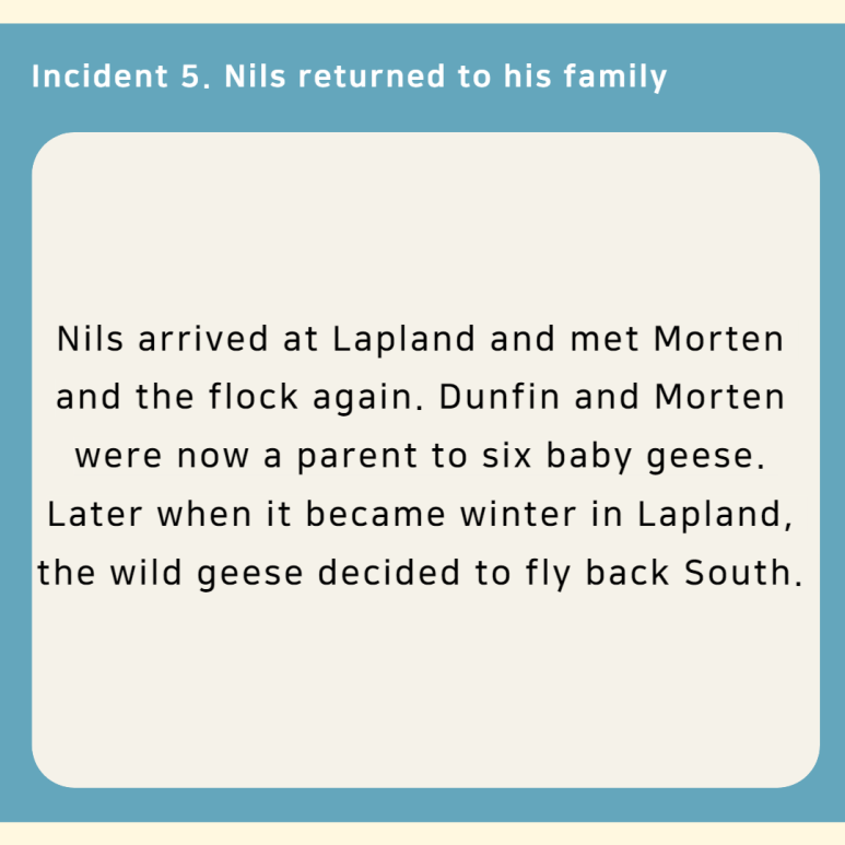 the wild geese decided to fly back South. Nils and Morten followed the wild geese back to their home. Nils's mom tried to sell Morten's babies. But then, Nils