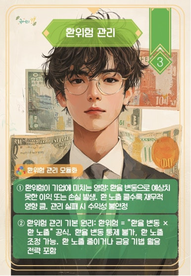 국제 거래가 활발해지는 현대 경제에서 환위험 관리는 기업의 생존과 직결됨.