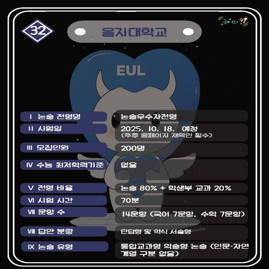 정보 기준: 2026학년도 을지대학교 수시모집요강 및 공개된 논술 자료 일체